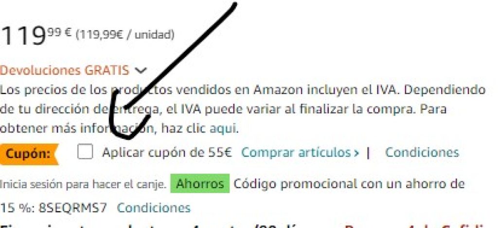 Para que te quede al precio de 39,79€ tienes que aplicar el cupón de descuento de 55 euros y el código de descuento HKTV4ZPO.
