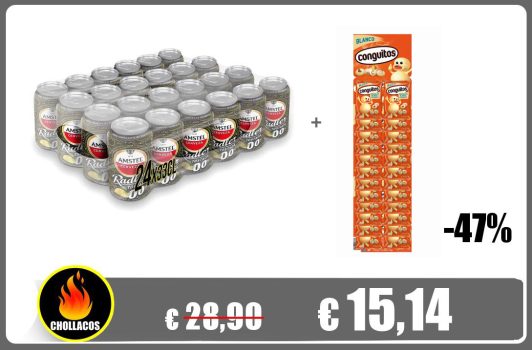 🔥 AMSTEL RADLER 0,0 TOSTADA LATA 33CL PACK-24 + Conguitos Blancos Contiene 24 bolsitas para compartir con quien quieras.