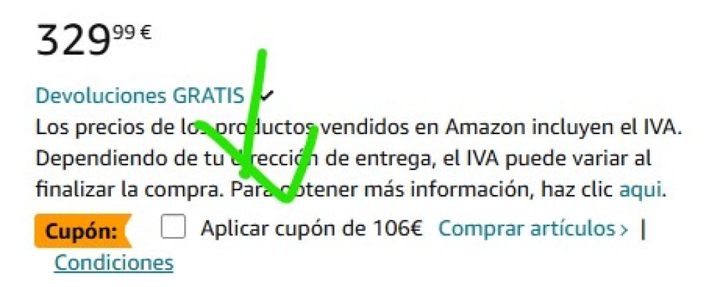 Aplicar cupón de 106€ y código 5ERNBU6W