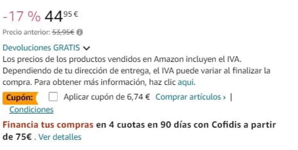 Aplicar cupón de 6,74 € para que te quede a menor precio